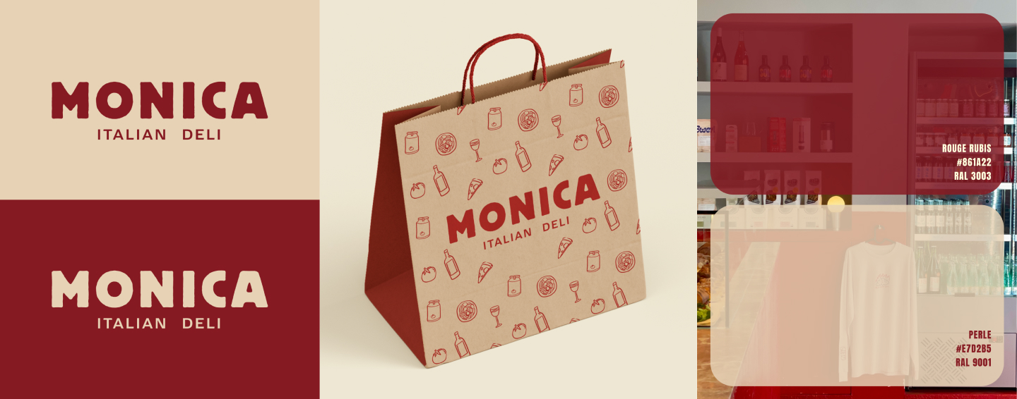 J’ai conçu une identité visuelle à son image : chaleureuse, élégante et inspirée de la culture italienne. Le travail a porté sur la création du logo, de l’univers graphique et des bases visuelles permettant de structurer la communication de la marque.